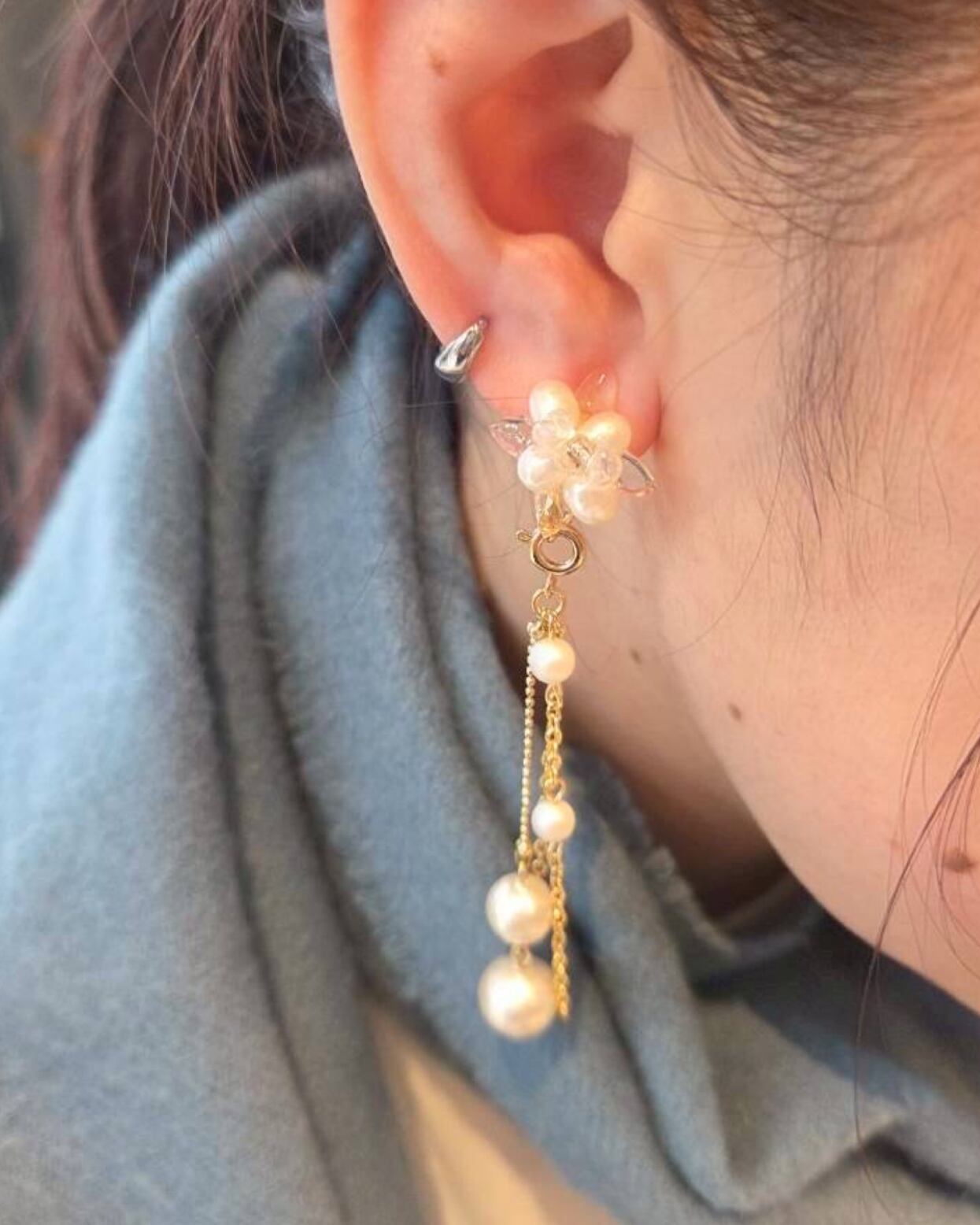 お手持ちのどの“ピアス/イヤリング”にも着脱可能な装飾用パールチェーン
